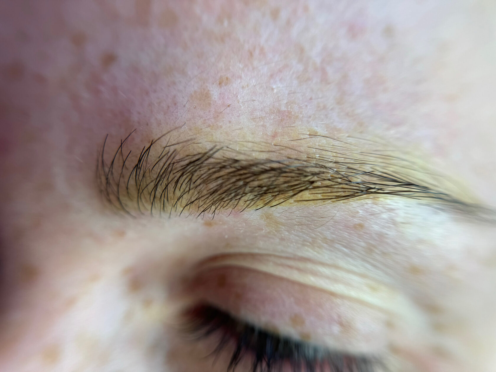 Если Вы удаляли брови, сделанные более одного года назад, лазером, то остаток желтого может быть совсем невесом, потому, что сам колорант уже «потух» в коже и не выглядит ярко.