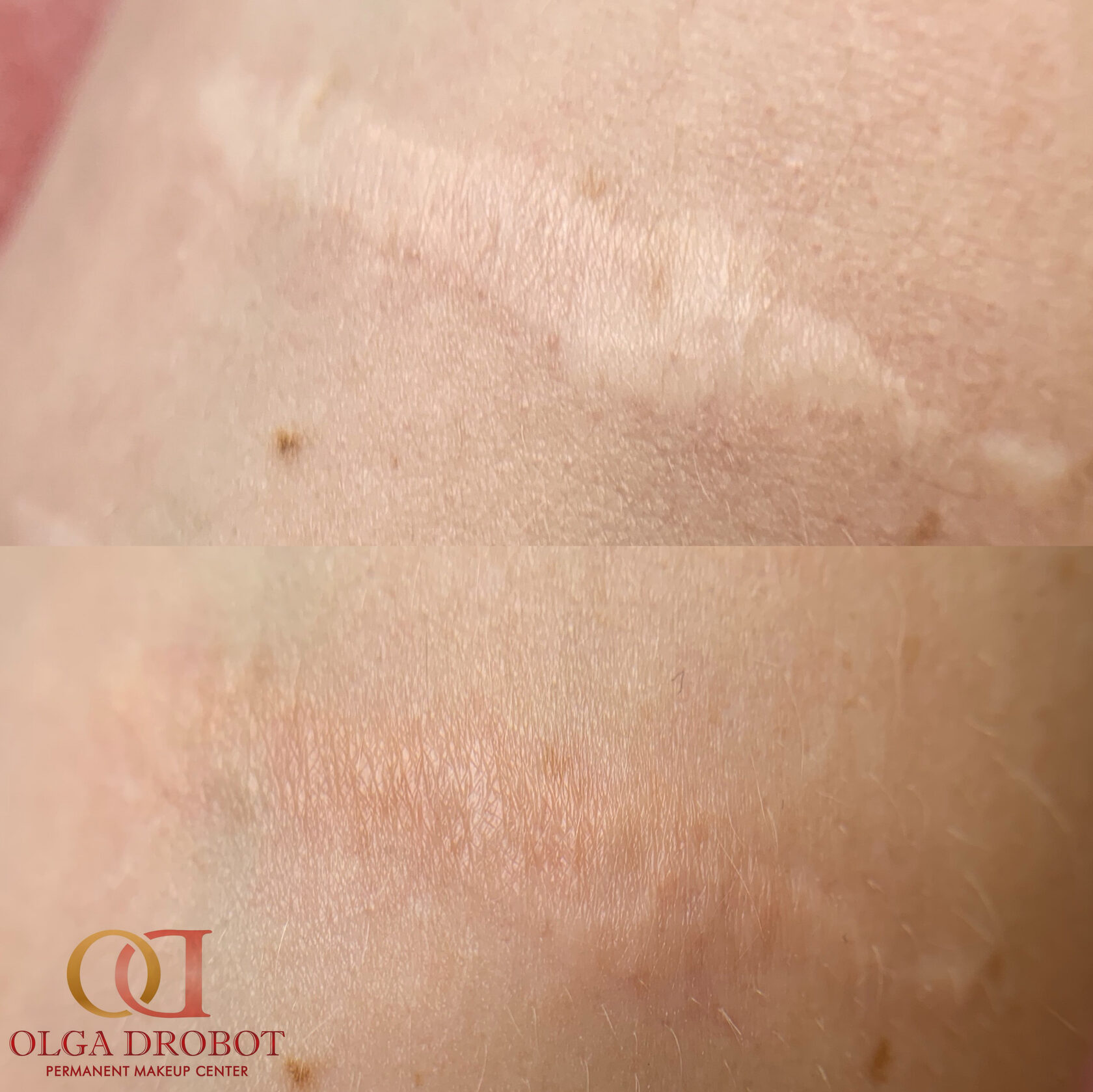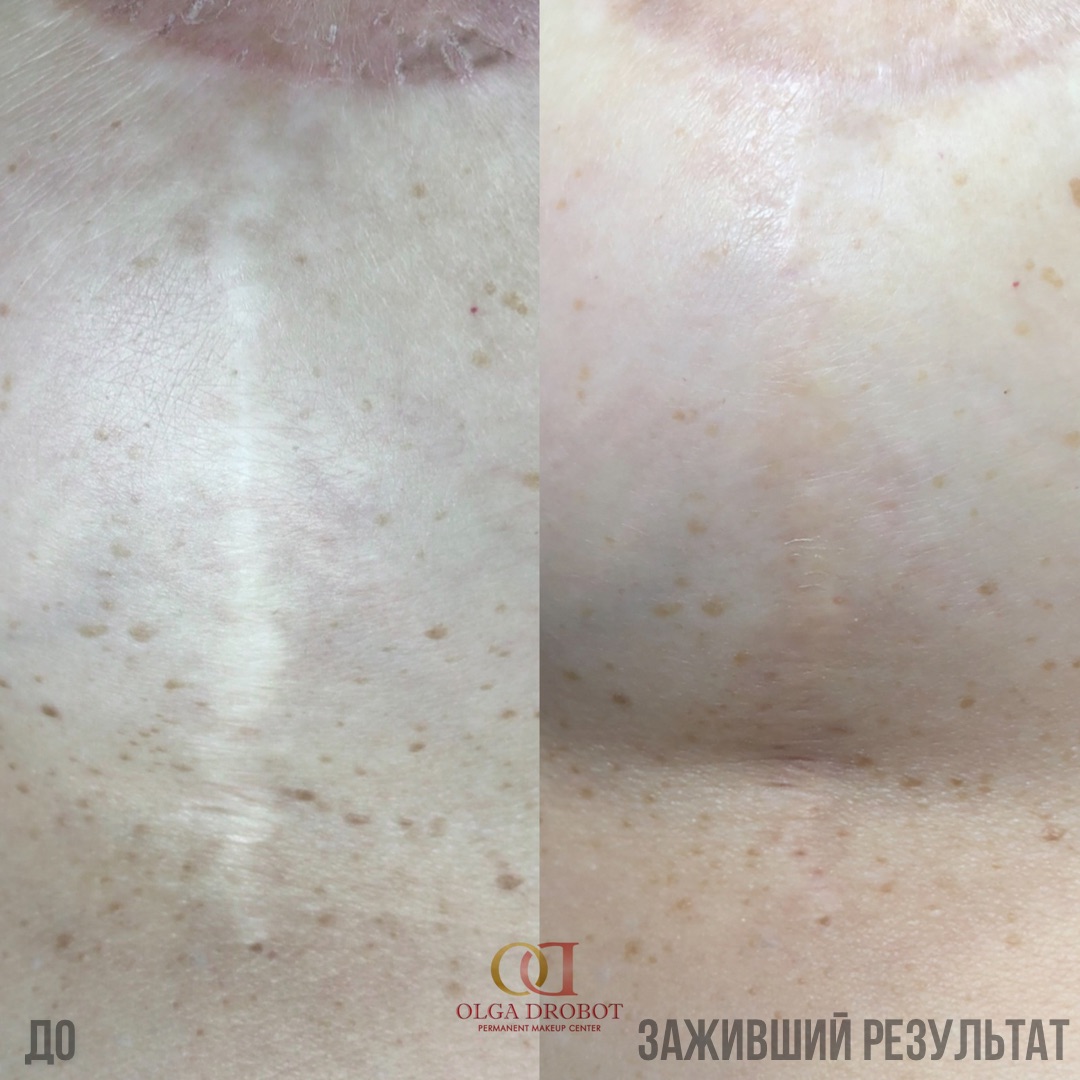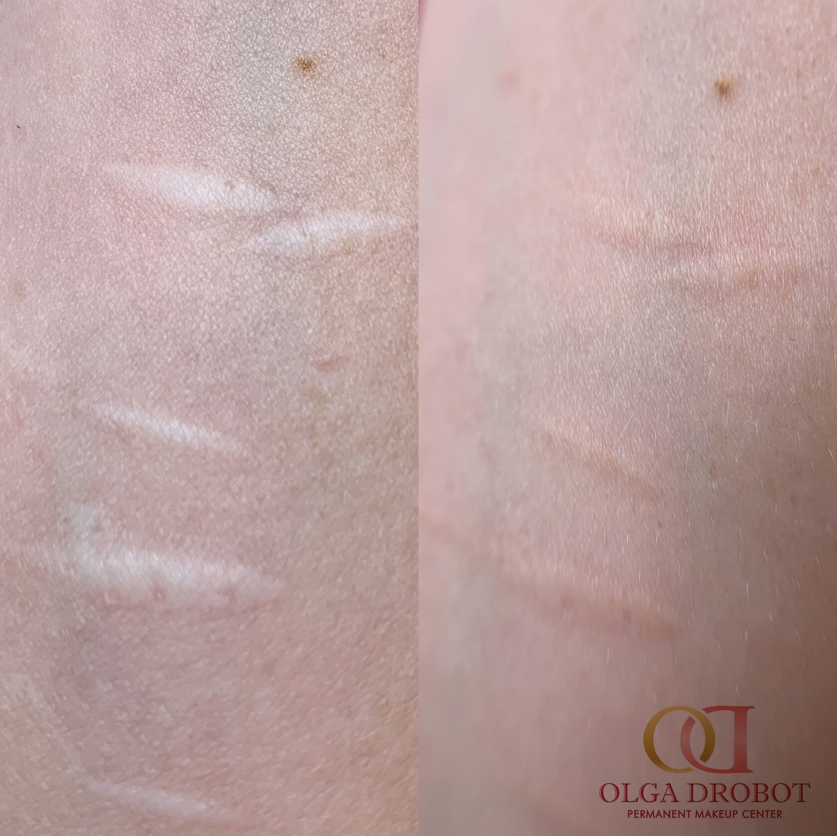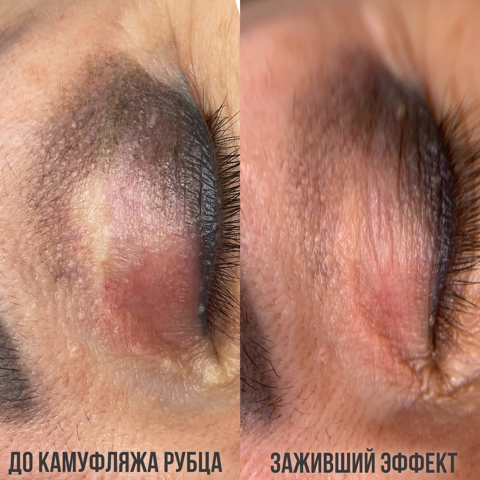 И конечно рубцы можно камуфлировать прям под цвет кожи, но это больше касается рубцов вне зон перманента на лице. Так можно камуфлировать шрамы от травм, хирургических вмешательств и пластических операций.